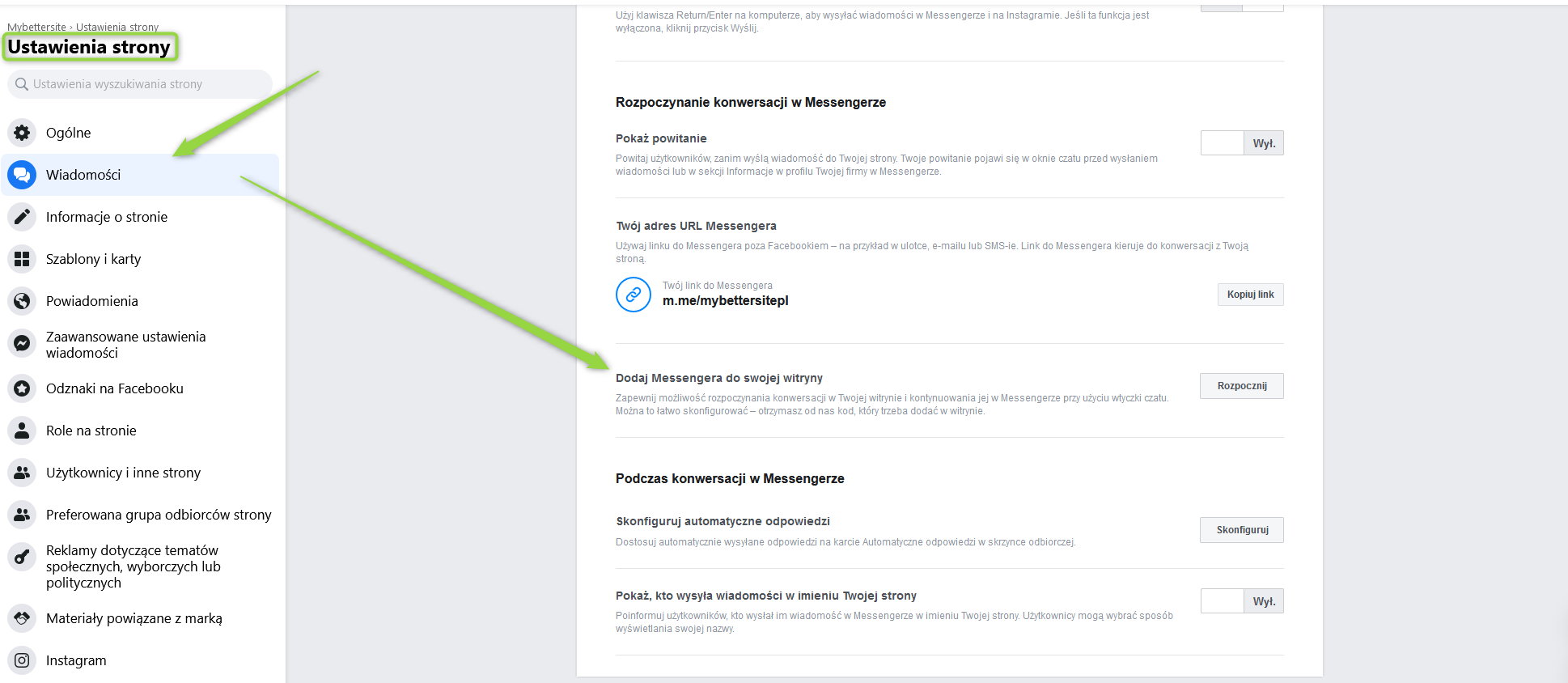 Podstawowym krokiem do dodania wtyczki jest wygenerowanie kodu z poziomu swojego profilu firmowego na FB w sekcji ustawienia: