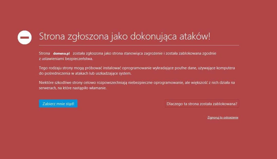 Podczas przeglądania stron WWW, zapewne każdemu z nas zdarzyło się trafić na komunikat na czerwonym tle, informujący o zagrożeniu: Strona zgłoszona jako dokonująca ataków! lub Strona, którą chcesz otworzyć, zawiera złośliwe oprogramowanie. W krótkim komunikacie możemy przeczytać, że odwiedzana przez nas witryna jest zablokowana i bezpieczniej byłoby ją opuścić. Dla zwykłego użytkownika nie jest to problem – znajdzie on inną stronę, która będzie bardziej zaufana. Gorzej w sytuacji jeśli wskazany komunikat dotyczy strony naszej firmy i to my tracimy potencjalnych klientów i ich zaufanie.