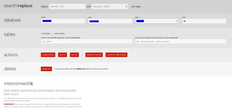 Jeśli nie mamy dostępu do zaplecza WordPressa, to może być nasza ostatnia nadzieja. Skrypt jest dostępny pod adresem: https://interconnectit.com/products/search-and-replace-for-wordpress-databases/ wystarczy podać swój e-mail i po chwili otrzymają Państwo link do pobrania.- Po rozpakowaniu należy go wysłać do katalogu głównego na serwerze (może się nazywać public_html, httpdocs etc.).